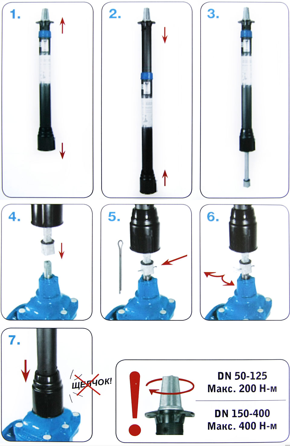 Инструкция по установке удлинительных шпинделей телескопического типа для клиновых задвижек AVK