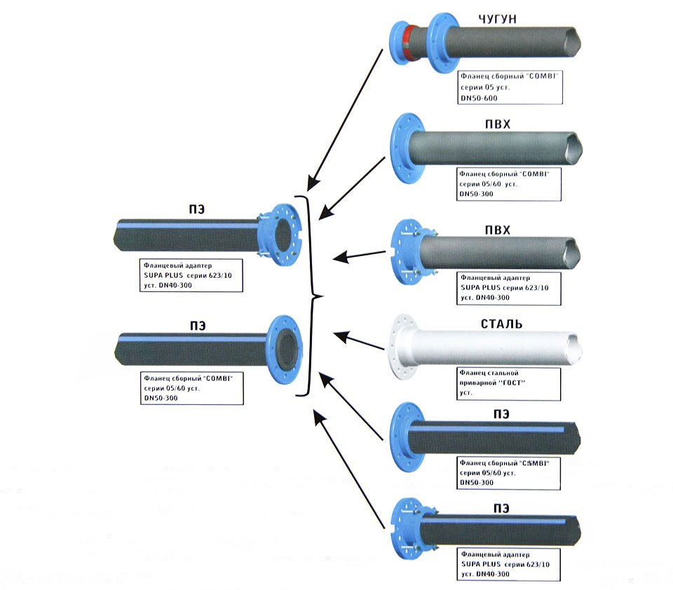 При соединении с ПЭ трубой необходимо использовать ответный фланец только фиксирующего типа.