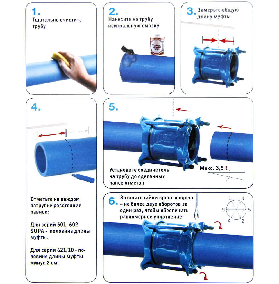Инструкция по установке соединительных муфт AVK для серий 601, 602 SUPA и 621/1- SUPA PLUS