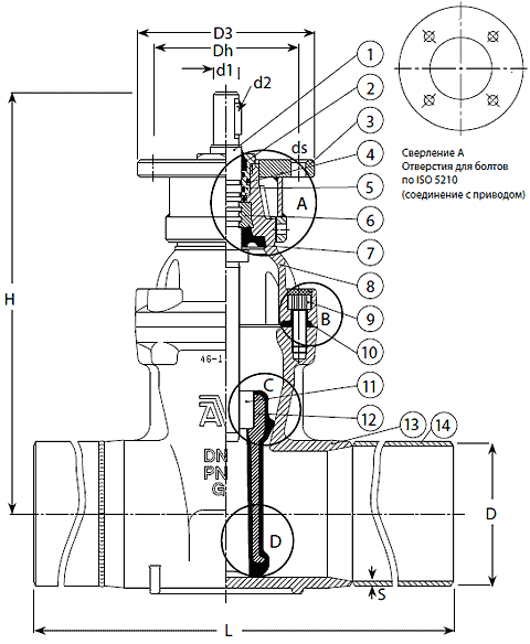 По стандартам EN13774 с фланцем ISO для установки привода
