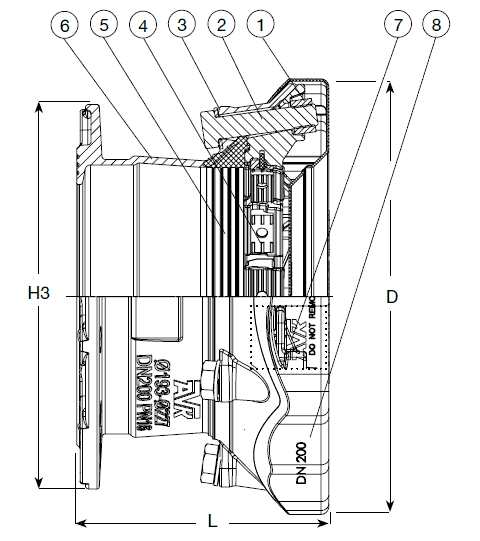 • Корпус из шарографитного чугуна, захватывающие фланцы из литой стали с эпоксидным покрытием по DIN 30677-2 и согласно требованиям GSK.