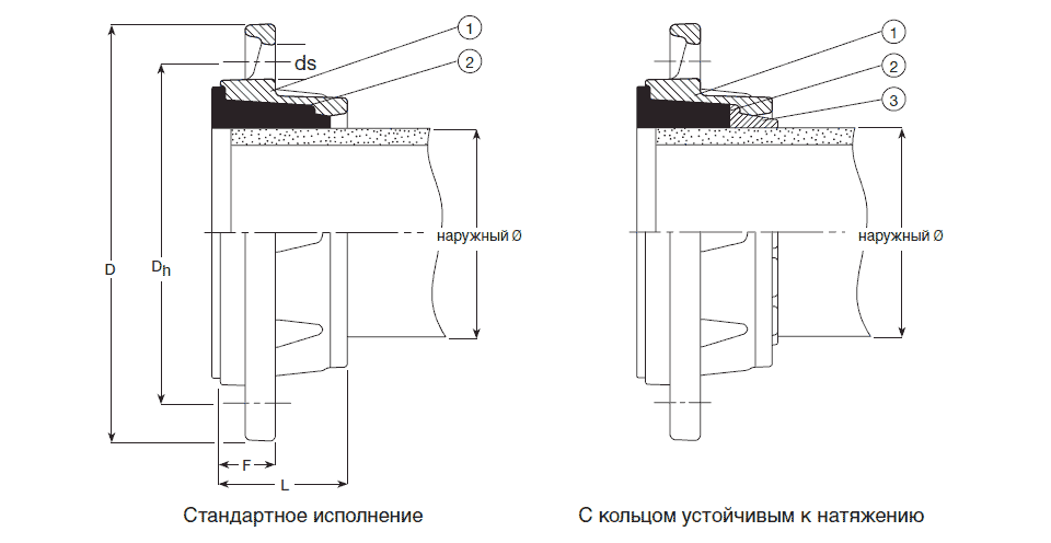 1. Фланец 2. Уплотнительное кольцо 3. Кольцо устойчивое к натяжению