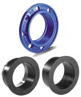 Фланец сборный со стандартным или устойчивым к натяжению уплотнительным кольцом для ПВХ-труб по ISO 3606.