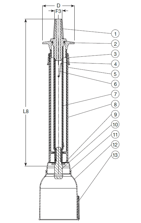 | 5. Верхняя наружная труба | 11. Колпачок нижней покрышки |